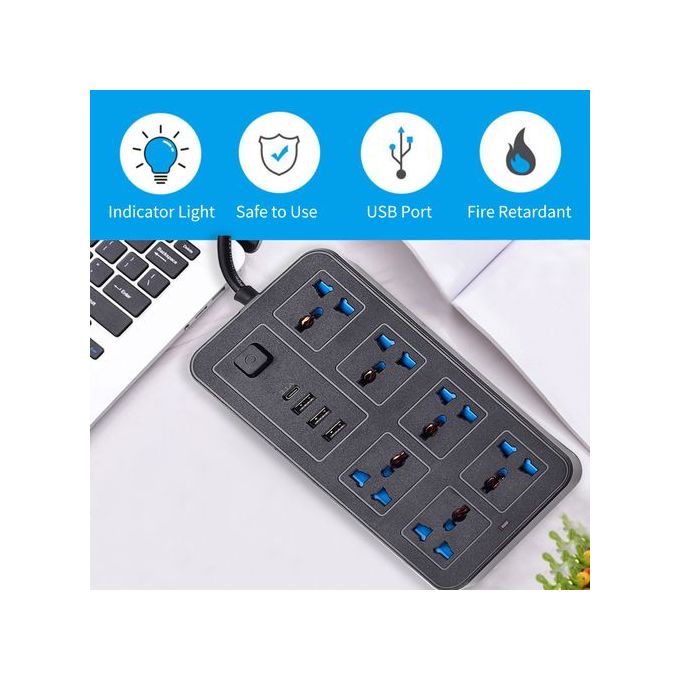 Power Strip 6 AC Sockets & 3 USB 1 Type C Port 6FT Cord