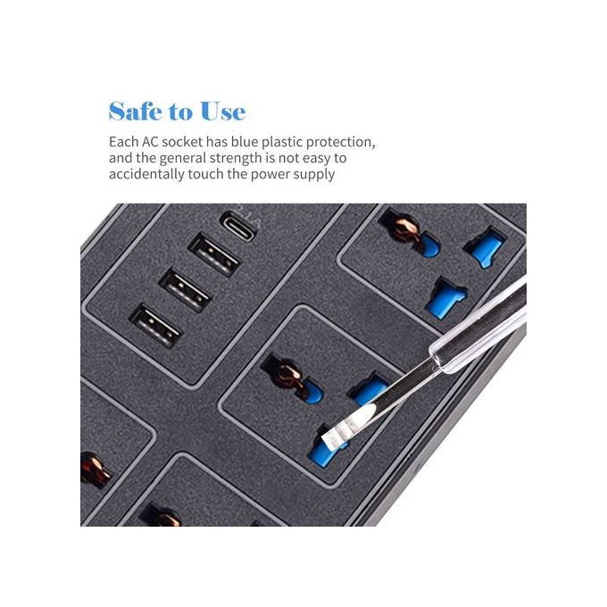 - [Safe to Use]Each AC socket has a blue plastic protection door, and the general strength is not easy to accidentally touch the power supply.